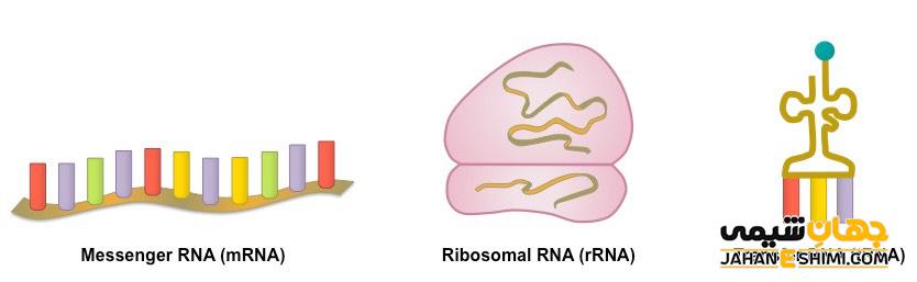 سه نوع RNA در سلول ها به نام های mRNA (RNA پیام رسان)، tRNA (RNA انتقال دهنده) و rRNA (RNA ریبوزومی) وجود دارد. عملکردهای این ریبونوکلئیک اسیدها در سلول ها بسیار پیچیده و مهم و مانند اعمالی است که آنزیم ها انجام می دهند.
