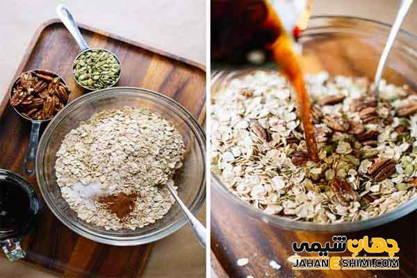گرانولا یک وعده غذایی خوشمزه و محبوب است که به عنوان صبحانه و میان وعده غذایی استفاده می شود، این ماده غذایی از مواد بسیار مغذی و مفید تشکیل شده است، بنابراین برای کودکان و نوجوانان بسیار توصیه می شود. اجزای اصلی گرانولا جو پرک و عسل ومغزها است و سایر ترکیبات خوشمزه شامل شکر قهوه ای، برنج بو داده، میوه های خشک (مانند کشمش و خرما و غیره) وانواع شکلات نیز استفاده می شود.
