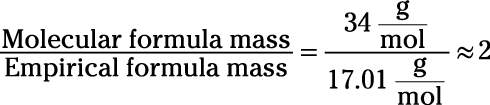 به عنوان مثال: فرمول مولکولی ترکیبی که دارای جرم مولکولی ۳۴ گرم در مول و فرمول تجربی HO باشد چیست؟ جرم فرمول تجربی را محاسبه کنید.